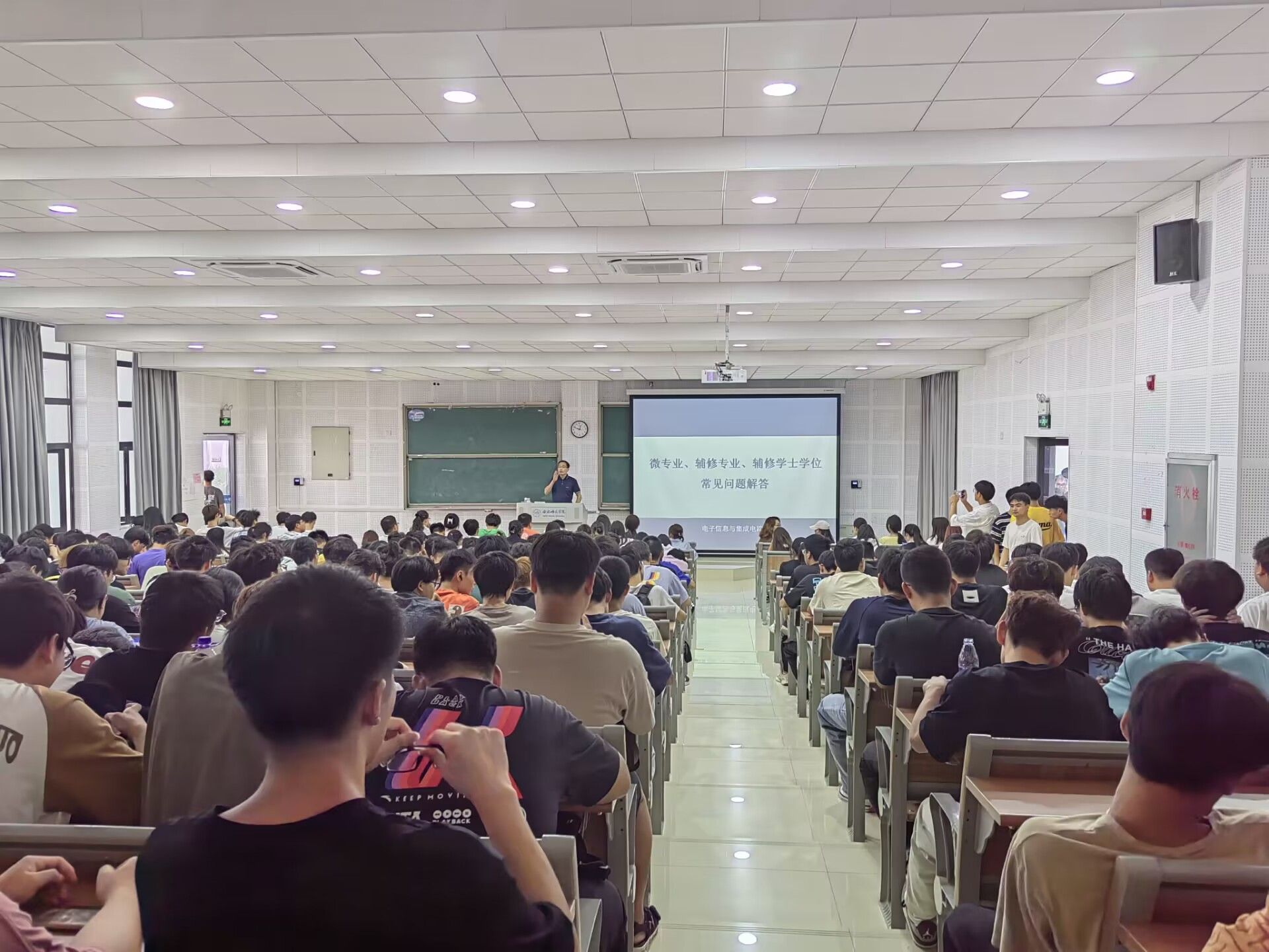 本网讯 根据学校和学院教学工作安排,9月15日,在教务处指导下,太阳成集团tyc522cc在滨湖校区博学楼A101举行申请辅修专业学生现场答疑会,党委委员、副院长范程华担任主讲人,学院2022级全体学生参会。