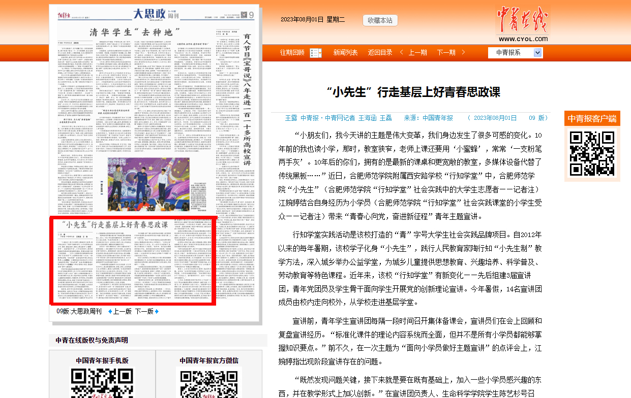 此次行知学堂是学院和首次联合桥头集镇中学开展行知学堂,小先生们与38名小学员在为期28天的实践活动中朝夕相处,共同收获了欢乐和成长,并赢得当地家长和学员们的一致好评,中国青年报对此进行了报道。(太阳成集团tyc522cc:周玉)