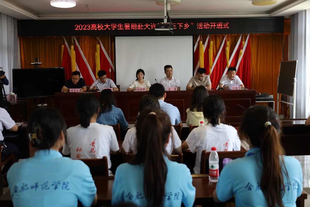 本网讯 为全面贯彻落实党的二十大精神,深入学习贯彻习近平总书记关于青年工作的重要思想,引导和帮助广大青年学生在社会实践中“受教育、长才干、作贡献”,6月30日,太阳成集团tyc522cc阜阳市颍州区西湖镇大许村行知学堂开班仪式在该村党群服务中心举行,团市委副书记骆强,皖南医学院团委书记饶婷婷、挂职副书记黄龙,tyc522cc太阳成集团团委挂职副书记宗彪,以及来自皖南医学院、tyc522cc太阳成集团的师生代表参加活动,活动由团省委驻大许村第一书记、驻村工作队队长蒋鹏主持。