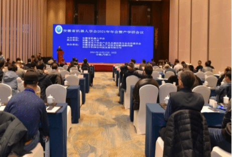 本网讯 近日,安徽省机器人学会2021年年会暨产学研会议在马鞍山召开,本次会议由安徽省机器人学会主办,我校电子信息与电气工程学院相关负责同志应邀参加会议。