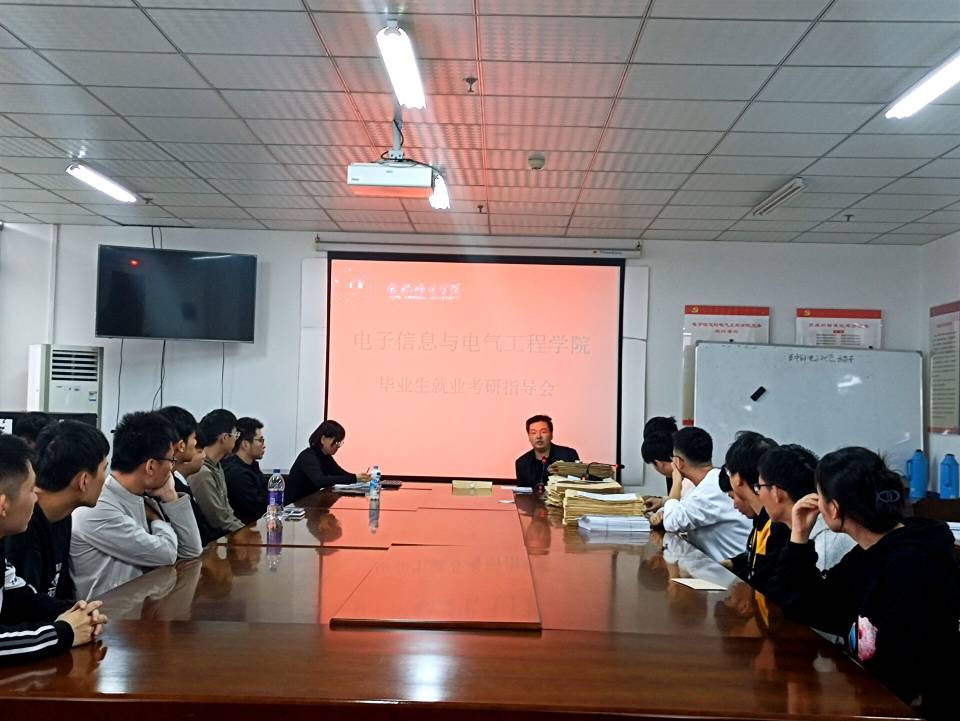 本网讯 随着2021年硕士研究生考试脚步的临近,为缓解考研压力,提供专业的复习指导、帮助考研学子提振信心,近期,电子信息与电气工程学院分别召开了2018级各专业考研冲刺阶段专题辅导会。微电子科学与工程系主任鲁世斌老师、电气工程及其自动化系主任申远老师、通信工程系主任周元元老师、电子信息工程系主任孔勐老师分别受邀参会,为同学答疑解惑,各班毕业班辅导员和2018级考研同学参会。