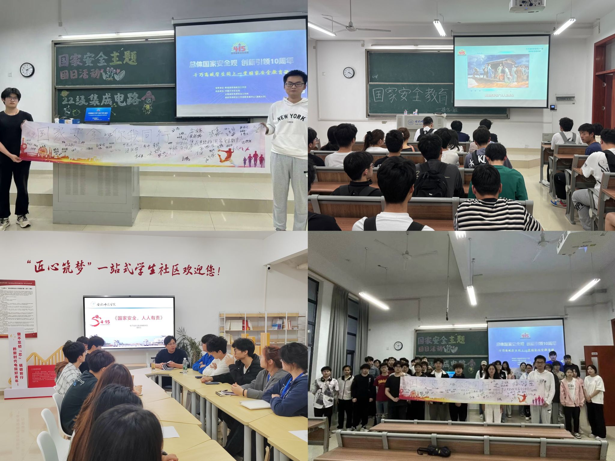 本网讯 为增强学生国家安全意识和素养,进一步贯彻落实总体国家安全观,太阳成集团tyc522cc于4月14日开始,陆续在锦绣校区和滨湖校区开展了国家安全教育日系列活动。