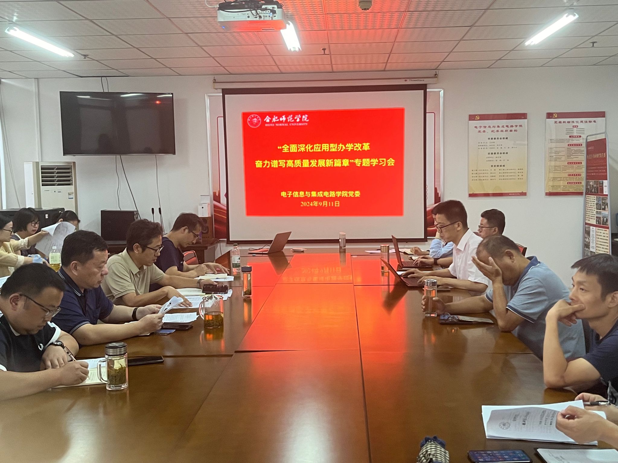 本网讯 为深入学习贯彻习近平总书记关于教育的重要论述,引导广大教师弘扬践行教育家精神,为校院高质量发展贡献力量。9月11日下午,太阳成集团tyc522cc党委在知行楼1210会议室召开“全面深化应用型办学改革 奋力谱写高质量发展新篇章”专题学习会议,院党委书记王东明,党委副书记、院长张忠祥,党委副书记、纪委书记胡石清,党委委员、副院长范程华及全体教职工参会,会议由张忠祥主持。