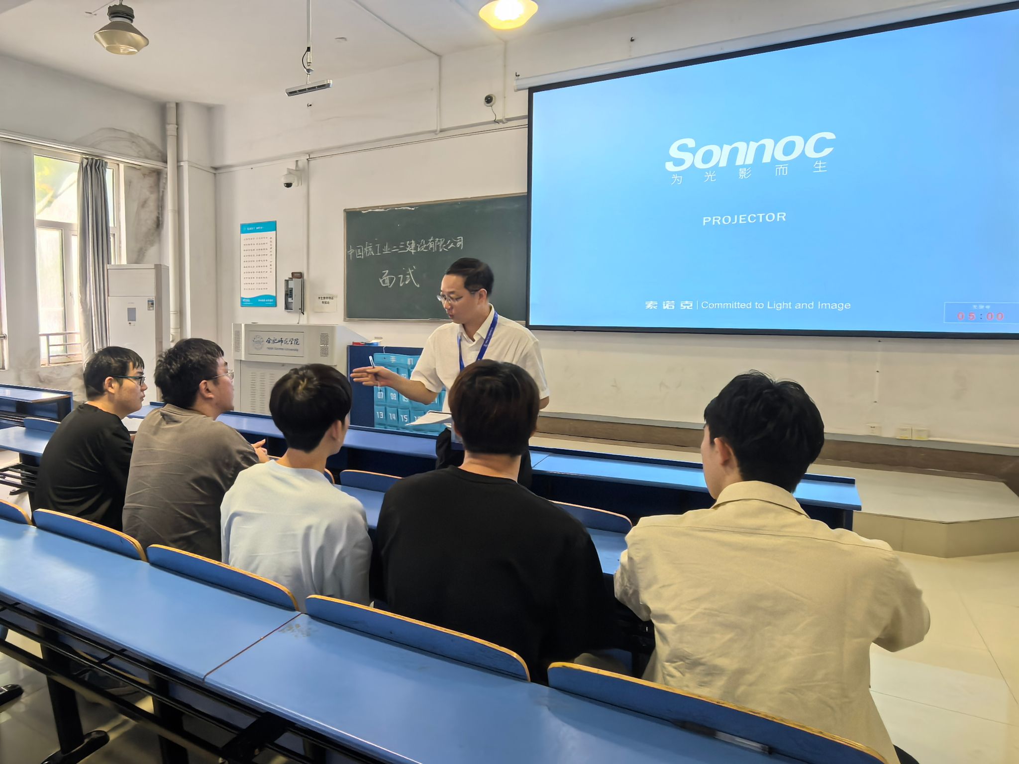 招聘会上,企业宣讲人通过“相识中核二三、相知中核二三、选择中核二三、加入中核二三”四个方面详细介绍了公司的基本概况、发展前景、福利保障、薪酬体系等。企业现场收取简历、筛选简历并在逸夫楼A103进行了面试。