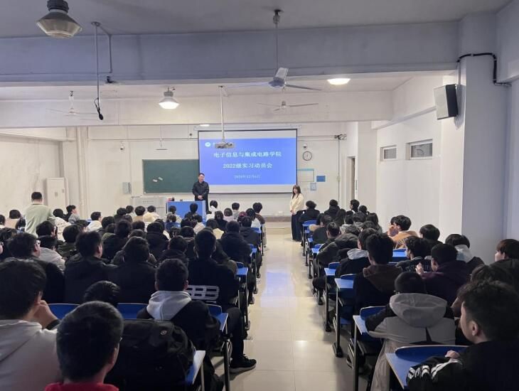本网讯 12月6日,太阳成集团tyc522cc在锦绣校区逸夫楼 A109 教室召开 2022 级全体学生实习动员会。会议聚焦实习准备工作,旨在提升学生实践能力,助力实习顺利推进。学院党委委员、电子信息工程系主任孔勐教授主持会议,辅导员周玉老师及2022级全体学生共同参会。