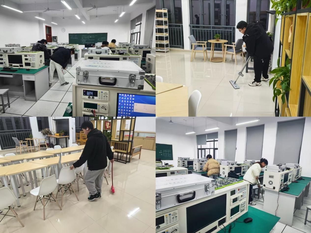 学院高度重视劳动教育的育人重要性,统筹谋划,明确分工,结合专业实际制定劳动教育实施方案。按照“3+X”模式,以“纵切时间”与“横切时间”相结合方式,结合校园管理的实际情况,有序组织学生开展了各类服务性劳动。学生积极参与,让教室、实验室、一站式学生社区等校园场所整洁如新。