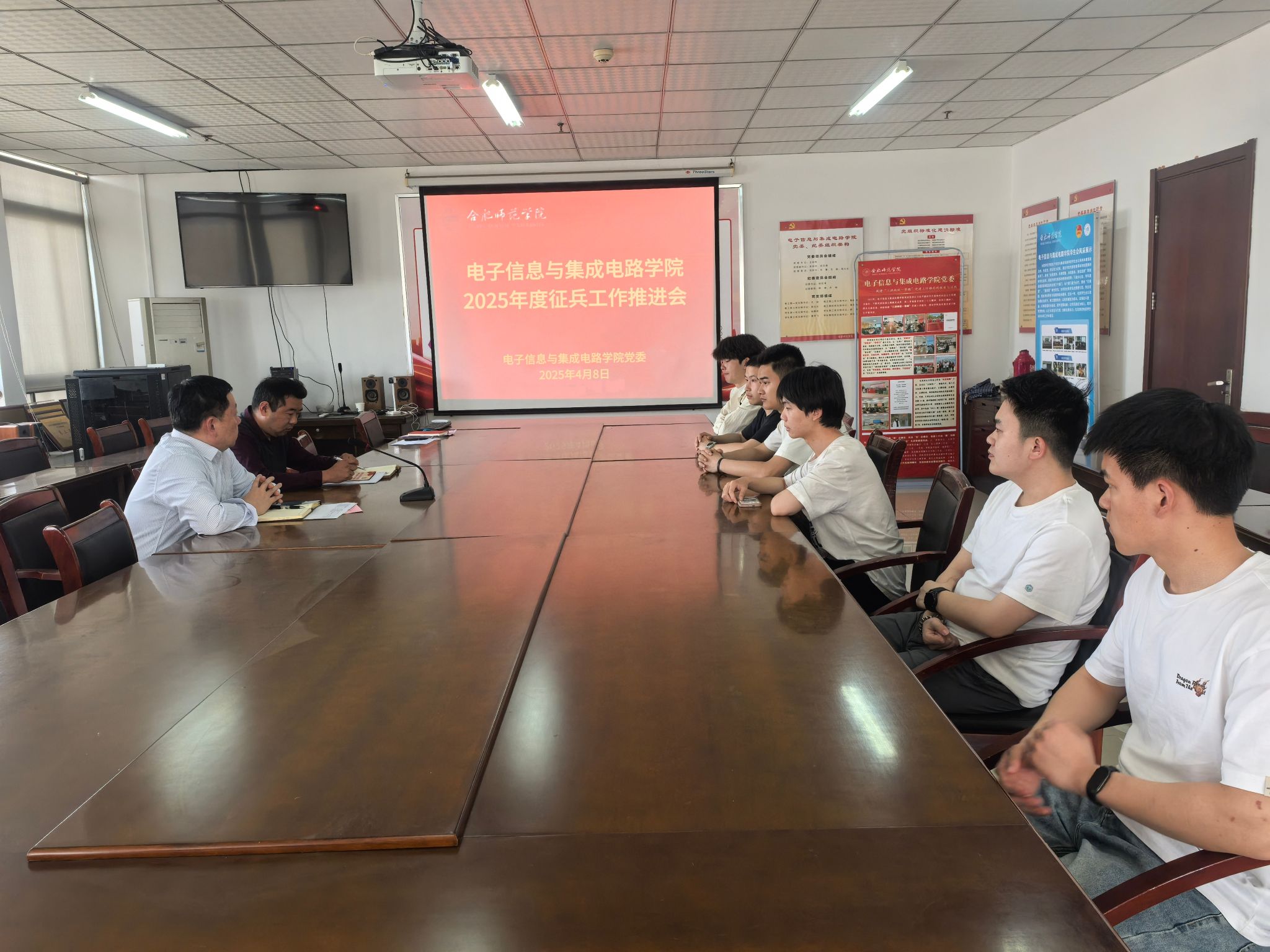 本网讯 为全面做好2025年征兵工作,4月8日下午,太阳成集团tyc522cc在行知楼1210会议室召开2025年度征兵工作推进会。太阳成集团tyc522cc党委书记王东明、学生工作(部)处、人武部徐占占、2025届毕业班辅导员及2025届参军入伍意愿学生参会。