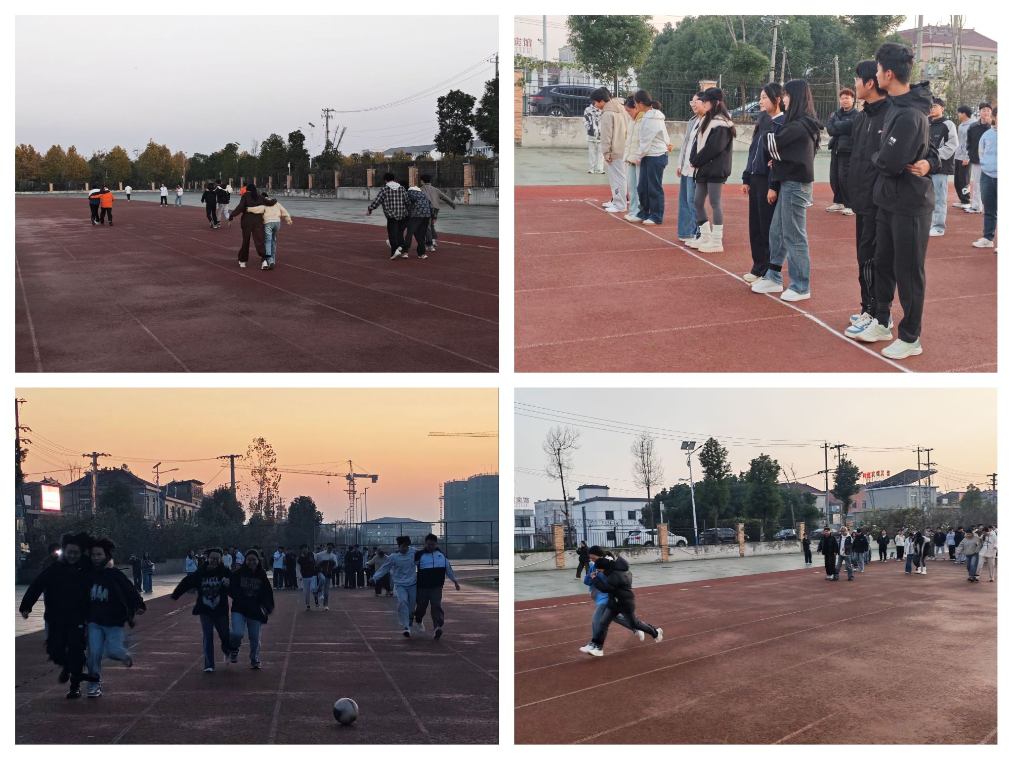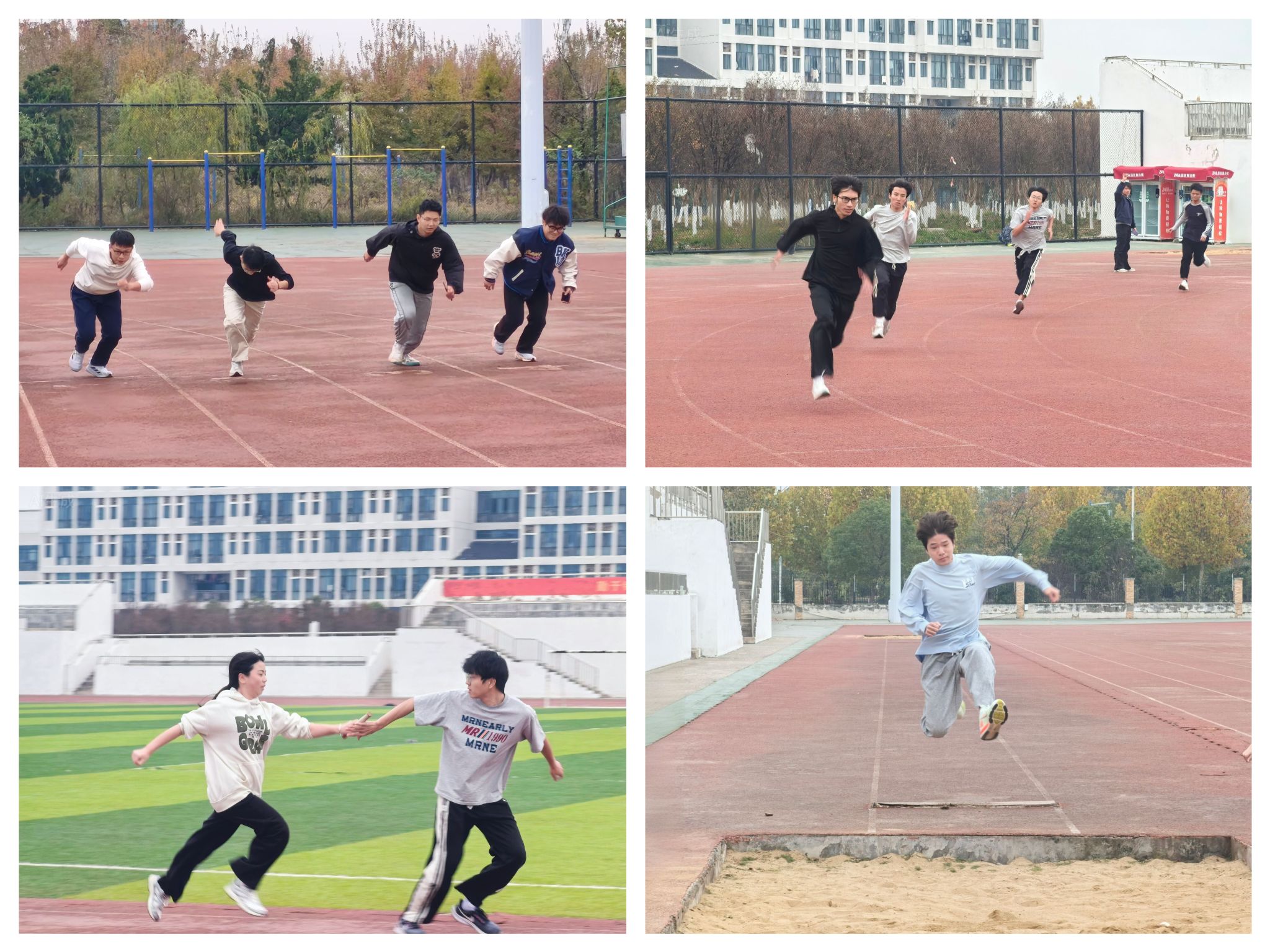 除了精彩的赛事,活动现场还设置了丰富多样的趣味互动环节,“两人三足”项目中,同学们两两一组,将相邻的脚绑在一起,喊着整齐的口号,携手向前奔跑。他们相互扶持、相互鼓励,在欢声笑语中完成了比赛,搭档们从最初的步履蹒跚到后来的行云流水,麻绳缠绕的不仅是双腿,更是默契的升华。百米赛道上,同学们如离弦之箭冲破起点,绷紧的肌肉与飞溅的尘土定格成青春最美的剪影。4×100米接力赛中,交接棒的刹那仿佛时空凝固——信任在指尖传递,团队精神在奔跑中具象化。立定跳远沙坑前,一次次助跑起跃都在刷新着自我极限的刻度。