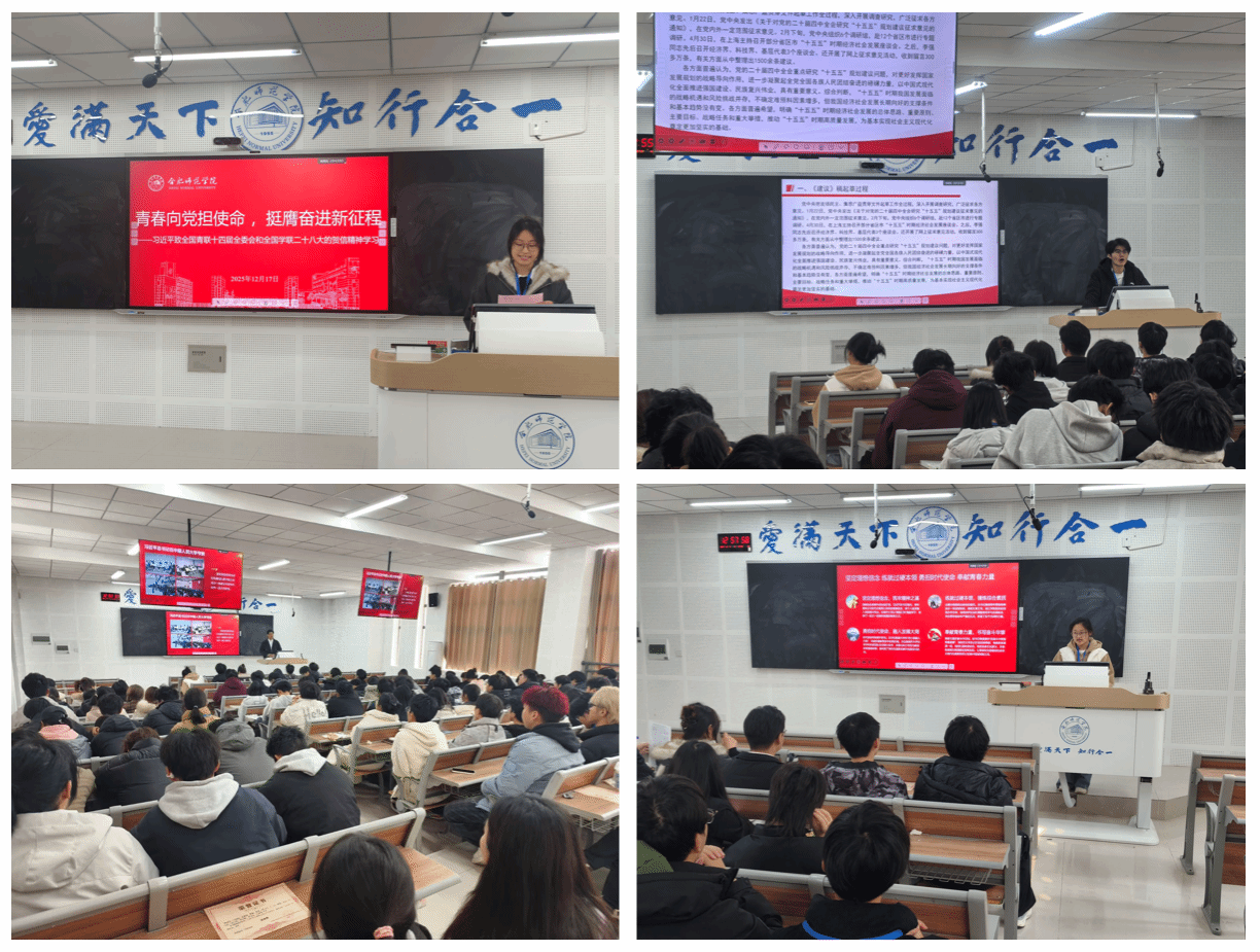 12月17日下午,太阳成集团tyc522cc第八届团委学生会第一次全体大会暨第二次培训会在理科楼A207举行。学院团委学生会指导老师马文斌与全体成员齐聚一堂,共同聚焦思想引领,夯实服务同学、助力学院发展的基础。会议围绕学习贯彻党的二十届四中全会精神、研读习近平总书记关于《中共中央关于制定国民经济和社会发展第十五个五年规划的建议》的说明及习近平总书记致全国青联十四届全委会和全国学联二十八大的重要贺信精神。
