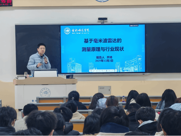报告中,齐琦博士围绕毫米波雷达的基础理论、核心测量机制、典型信号处理流程以及雷达在自动驾驶、工业检测、智能安防等领域的应用现状进行了系统讲解。他结合自身科研经历和行业案例,深入分析了毫米波雷达技术的发展趋势、产业需求以及未来可能的技术突破点,使学生对“智能感知”与“雷达前端—算法—系统”全链条有了更加清晰的理解。