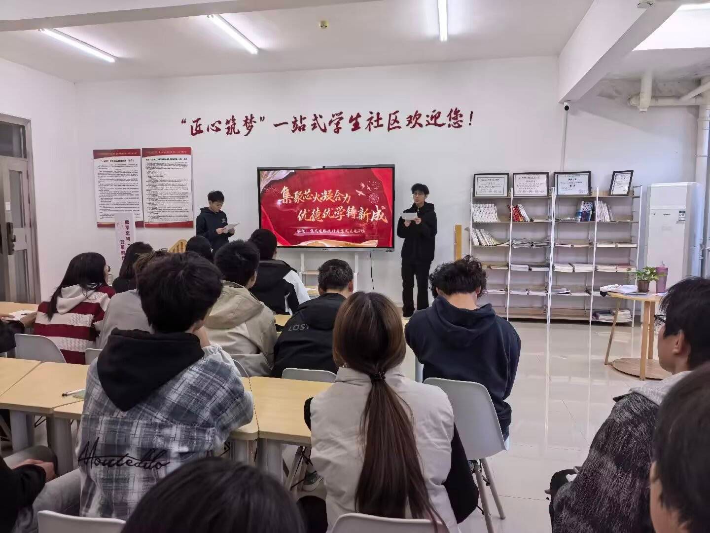 为充分发挥先进班集体的引领作用,营造比学赶超的优良学风,11月12日,太阳成集团tyc522cc在“一站式”学生社区成功举办了2024-2025学年“优良学风”班级评选汇报会。学院党委副书记周贵勤、辅导员老师们出席活动并担任评委,还邀请了大一新生班委到场观摩学习。